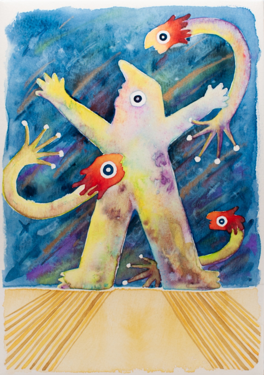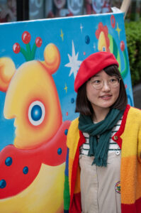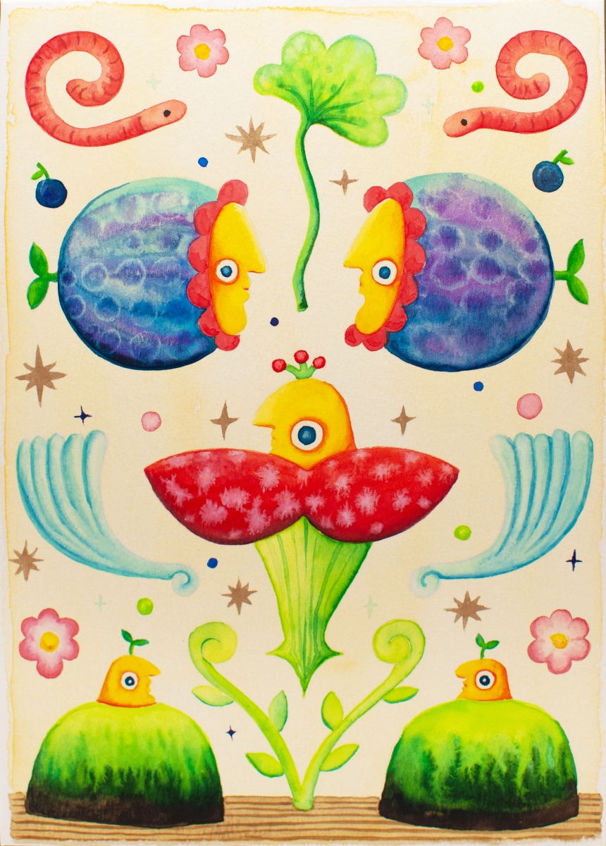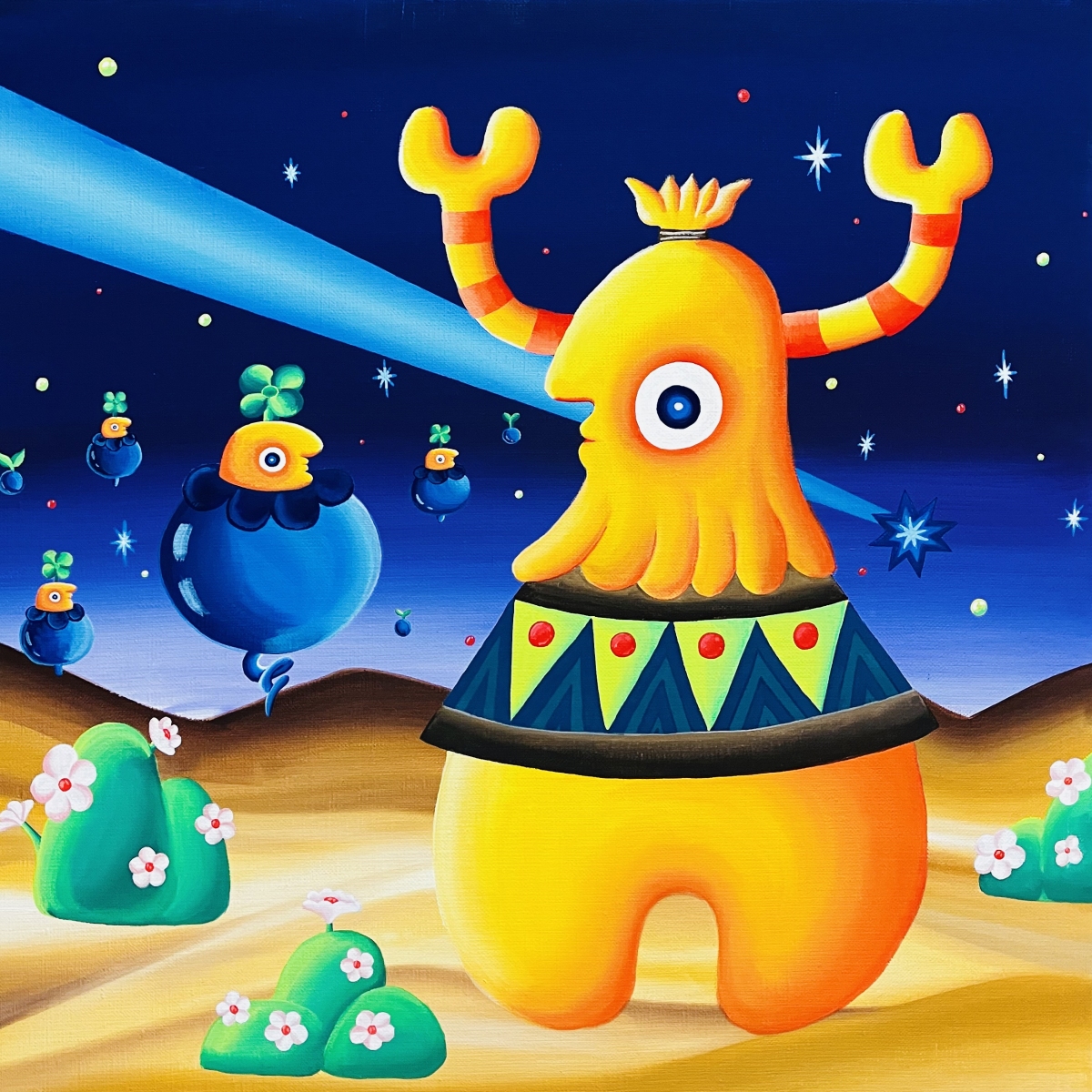 わたしの描く生き物は暮らしの中に潜む精霊のような存在です。日々を生きる中で心が踊るタネを拾い集め、自分の中で反芻していくうちに形成されてゆくイメージをありのまま作品にしています。これまで個展・グループ展の開催、ライブペイントや壁画制作、映画作品等へのアートワークなど好奇心赴くまま幅広く活動中。